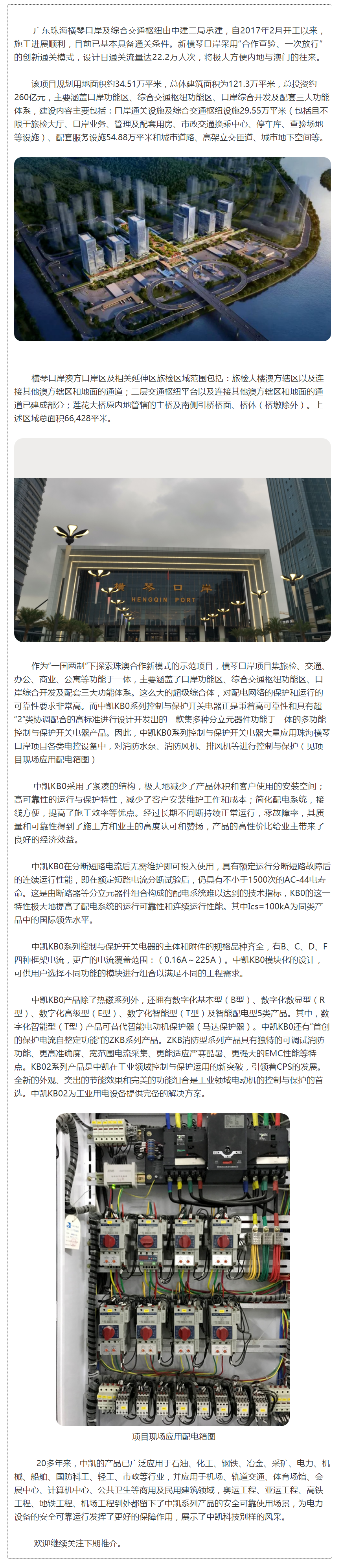 中凱KB0在珠海橫琴口岸配電系統中的應用