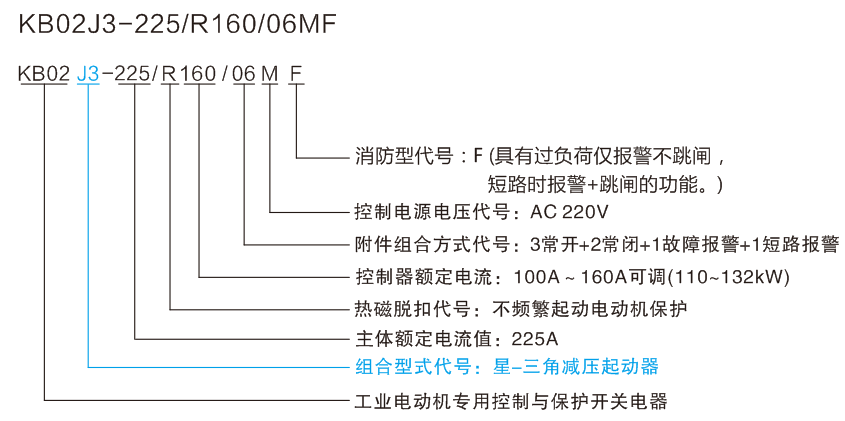適用于電動(dòng)機(jī)星-三角減壓起動(dòng)的控制與保護(hù),以KB02產(chǎn)品作為主開(kāi)關(guān),與塑殼斷路器、可逆接觸器、時(shí)間繼電器、電氣聯(lián)鎖及控制回路組合構(gòu)成-三角減壓起動(dòng)的控制與保護(hù)裝置。