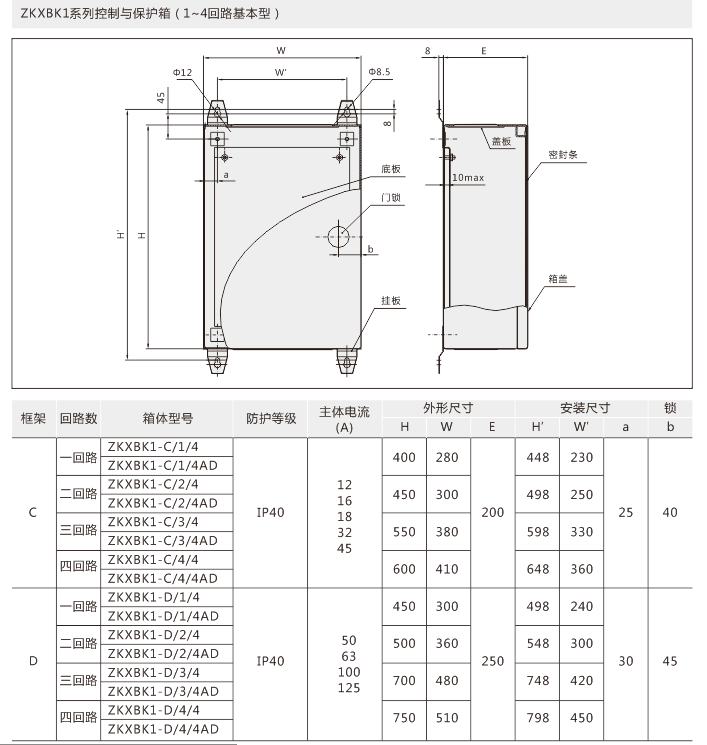 其以KB0作為主開關,配用不同的防護等級箱體,可構成防護等級為IP40、IP54、IP65等多種等級的保護控制箱ZKXBK1,適用于戶外以及遠程單獨負載的控制與保護。由KB0、KB0-F、KB0-G、KB0S3、KB0D、KB0N、KB0J、KB0J2、KB0Z等組合構成單回路、多回路等多種形式;根據需要,在箱體面板上可配備選擇開關、旋鈕、按鈕、信號燈等。與傳統的各種保護箱、綜合式、電磁起動器相比,具有體積小、重量輕、操作安全可靠、接線便捷、防護等級高等特點,且可以選擇就地控制、遠程控制和二者兼有的方式進行操作,是替代傳統產品的極佳選擇。
